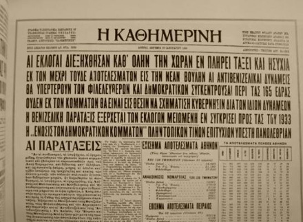 1919 – Κυκλοφορεί το πρώτο φύλλο της εφημερίδας Η Καθημερινή.