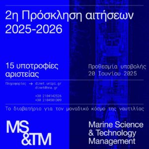 Την 2 η Πρόσκληση υποβολής αιτήσεων για το ακαδημαϊκό έτος 2025-2026 ανακοίνωσε το Δι-ιδρυματικό Πρόγραμμα Μεταπτυχιακών Σπουδών «Διοίκηση στη Ναυτική Επιστήμη και Τεχνολογία» (ΔΠΜΣ ΔΙΝΕΤ). Η προθεσμία για την υποβολή