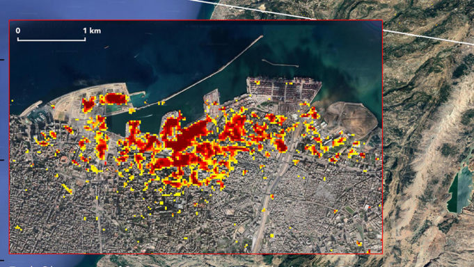 Χαρτογράφηση των καταστροφών που άφησαν πίσω τους οι πολύνεκρες εκρήξεις στη Βηρυτό προχώρησε η ομάδα Advanced Rapid Imaging and Analysis (ARIA) της NASA, χρησιμοποιώντας εικόνες από δορυφόρους σε μια προσπάθεια να προσδιορίσει την έκταση της ζημιάς που έχει προκληθεί.