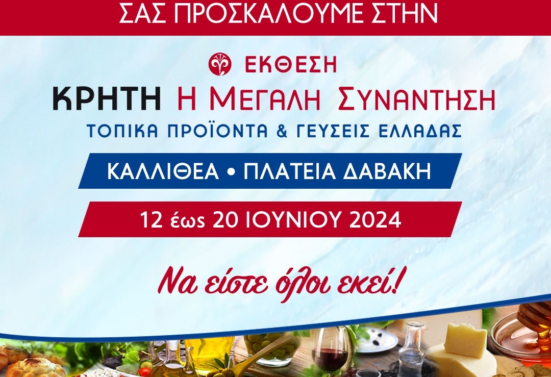H Έκθεση “Κρήτη Η Μεγάλη Συνάντηση: Τοπικά προϊόντα και γεύσεις Ελλάδας” ενσαρκώνει έναν εναλλακτικό τρόπο διάθεσης και προώθησης των τοπικών προϊόντων και αποτελεί έναν χώρο συνάντησης μικρών παραγωγών από όλη την Ελλάδα, με ξεχωριστά παραδοσιακά προϊόντα.