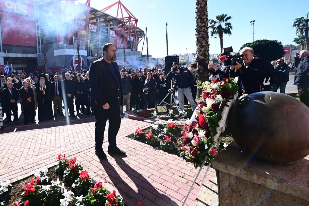Στο μνημείο της Θύρας 7 κατατέθηκαν λουλούδια, με το τουρνικέ της παλιάς θύρας να στέκει εκεί ως σιωπηλός μάρτυρας της μεγαλύτερης τραγωδίας που γνώρισε ποτέ ο ελληνικός αθλητισμός. Η παρουσία του Βαγγέλη Μαρινάκη, της διοίκησης και σύσσωμου του ποδοσφαιρικού τμήματος είχε έντονο συμβολισμό.