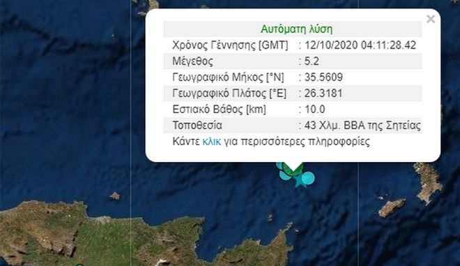Συγκεκριμένα, η πρώτη-«ισχυρή»- δόνηση, μεγέθους 5,1 βαθμών στην κλίμακα Ρίχτερ, σημειώθηκε στις 03:30 και το επίκεντρό της εντοπίστηκε 49 χιλιόμετρα βόρεια-βορειοανατολικά της Σητείας· η δεύτερη, μεγέθους 4,4 βαθμών στην κλίμακα Ρίχτερ, σημειώθηκε στις 03:44 και το επίκεντρό της εντοπίστηκε 47 χιλιόμετρα βόρεια-βορειοανατολικά της Σητείας· και η τρίτη, μεγέθους 4,1 βαθμών στην κλίμακα Ρίχτερ, σημειώθηκε στις 04:11 και το επίκεντρό της εντοπίστηκε σε απόσταση 50 χιλιομέτρων βόρεια-βορειοανατολικά της Σητείας, κατά το Ινστιτούτο.