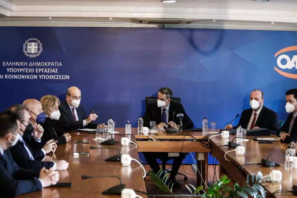 Η παρουσίαση των προγραμμάτων του ΟΑΕΔ για το 2022, μέσω των οποίων θα προσφερθούν 86.000 νέες θέσεις εργασίας, ήταν το αντικείμενο της σύσκεψης που έγινε το πρωί στα κεντρικά γραφεία του Οργανισμού παρουσία του πρωθυπουργού Κυριάκου Μητσοτάκη, ο οποίος ενημερώθηκε επίσης από τον Υπουργό Εργασίας και Κοινωνικών Υποθέσεων Κωστή Χατζηδάκη και τον Διοικητή του ΟΑΕΔ, Σπύρο Πρωτοψάλτη, για τα αποτελέσματα των προγραμμάτων τόνωσης της απασχόλησης την τελευταία διετία.
