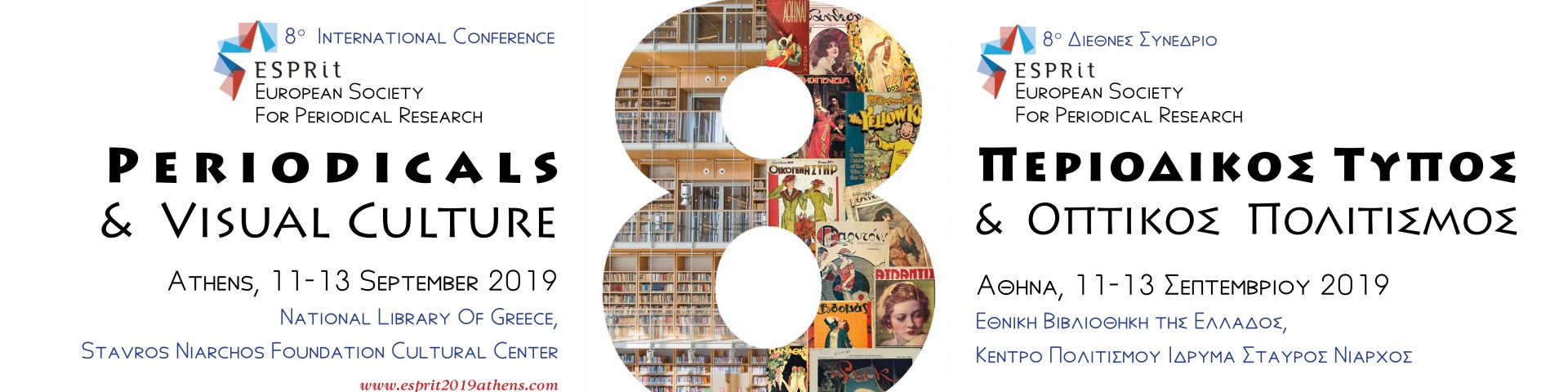 Η Ένωση Συντακτών Περιοδικού και Ηλεκτρονικού Τύπου και το Εργαστήριο Τεκμηρίωσης και Μελέτης της Ιστορίας του Ελληνικού Τύπου/Κέντρο Έρευνας Νεότερης Ιστορίας του Πάντειου Πανεπιστημίου συνδιοργανώνουν τo 8ο Διεθνές Συνέδριο της ESPRit, με θέμα «Περιοδικός Τύπος και Οπτικός Πολιτισμός». Το Συνέδριο θα φιλοξενηθεί στην Εθνική Βιβλιοθήκη της Ελλάδος στο Κέντρο Πολιτισμού Ίδρυμα Σταύρος Νιάρχος (ΚΠΙΣΝ).