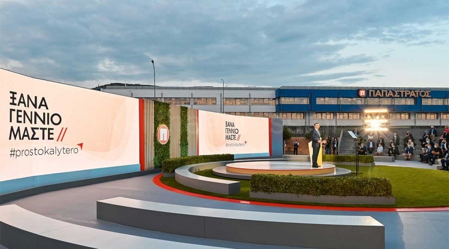 Για να συμπληρώσει πως «Γι’ αυτό και σήμερα δεν είναι άλλη μια μέρα. Είναι μία άλλη μέρα. Με βασικό σύνθημα το «Ξαναγεννιόμαστε», είναι η μέρα που μοιραζόμαστε μαζί σας τη στρατηγική βιώσιμης ανάπτυξης της Παπαστράτος και την νέα μεγάλη επένδυση που την σηματοδοτεί.