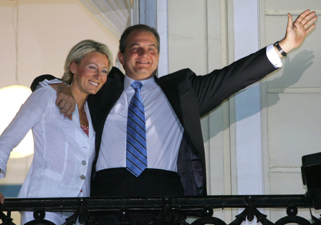 Στις 7 Μαρτίου 2004, ως αρχηγός της Νέας Δημοκρατίας, ανεδείχθη νικητής στις βουλευτικές εκλογές με ποσοστό 45,36% εξασφαλίζοντας κοινοβουλευτική πλειοψηφία 165 εδρών επί συνόλου 300. Έλαβε εντολή σχηματισμού κυβέρνησης από τον Πρόεδρο της Δημοκρατίας και στις 10 Μαρτίου ορκίστηκε Πρωθυπουργός και υπουργός Πολιτισμού. Στον ανασχηματισμό της 14ης Φεβρουαρίου 2006 παραιτήθηκε από το χαρτοφυλάκιο του Υπουργείου Πολιτισμού.