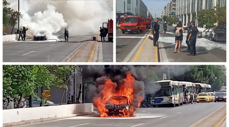 Συναγερμός σήμανε χθες το πρωί στη λεωφόρο Συγγρού στο ύψος του Φιξ όταν στο ρεύμα καθόδου αυτοκίνητο τυλίχθηκε στις φλόγες.
