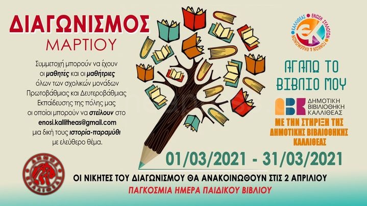 Με αφορμή την Παγκόσμια Ημέρα Παιδικού Βιβλίουκαι τη συμπλήρωση, φέτος, 216 χρόνων από τη γέννηση του σπουδαίου αυτού συγγραφέα, η Ένωση Συλλόγων Γονέων & Κηδεμόνων Καλλιθέας, μαζί με τη Δημοτική Βιβλιοθήκη της Καλλιθέας, προκηρύσσουν διαγωνισμό με θέμα: «Αγαπώ το βιβλίο μου».
