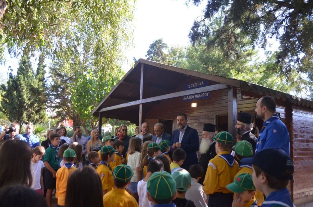 Ο Δήμαρχος Παλαιού Φαλήρου Γιάννης Φωστηρόπουλος στον σύντομο χαιρετισμό του ευχήθηκε «καλή και επιτυχημένη προσκοπική χρονιά», δήλωσε ότι « ο Δήμος αδιαλείπτως στηρίζει τους προσκόπους έμπρακτα προσφέροντας φιλοξενία του συστήματος εντός του Πάρκου Φλοίσβου» και ευχήθηκε στα παιδιά «οι αξίες, οι γνώσεις και η διαπαιδαγώγηση που θα αποκτήσουν να βοηθήσουν στην οικοδόμηση ενός καλύτερου κόσμου».