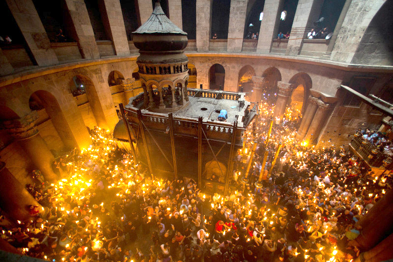 Μέσα στον Ναό του Παναγίου Τάφου συγκεντρώθηκε φέτος μικρότερος αριθμός πιστών σε σύγκριση με προηγούμενες χρονιές, λόγω των συνεχιζόμενων πολεμικών συγκρούσεων στην περιοχή.