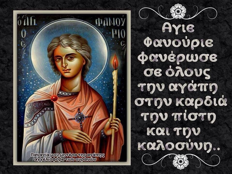 Εύφρανον αυτούς εν χαρά μετά του προσώπου σου, δείξον αυτοίς οδούς προς σωτηρίαν. Τα αιτήματα τών καρδιών αυτών καί πάσαν τήν βουλήν αυτών ταχέως πλήρωσον, οδηγών αυτούς προς εργασίαν τών εντολών σου, ίνα διά παντός εν ευφροσύνη καί αγαλλιάσει υμνώσι καί δοξάσωσι το πάντιμον καί μεγαλοπρεπές όνομά σου, πρεσβείαις της υπερευλογημένης Θεοτόκου, του αγίου ένδοξου νεομάρτυρος Φανουρίου, του Θαυματουργού, καί πάντων σου τών αγίων. Αμήν”.