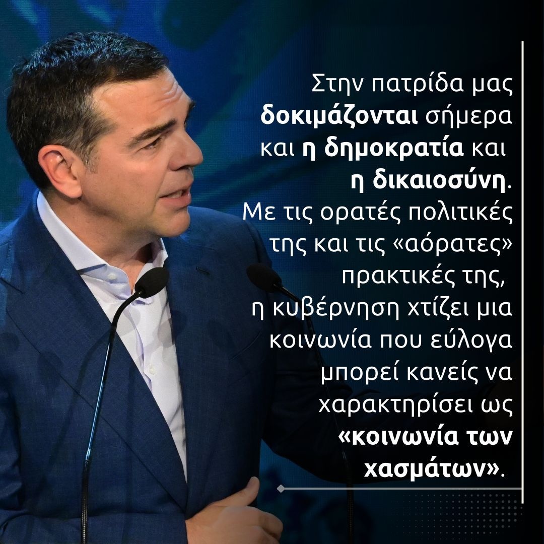 Ο Αλέξης Τσίπρας κάλεσε σε συμμετοχή και αυτοοργάνωση των πολιτών, υπογραμμίζοντας ότι η κοινωνία αναζητά «ρεαλιστική και αξιόπιστη εναλλακτική» και πως «η Ελλάδα μπορεί να αλλάξει μέσα από συλλογική προσπάθεια».
