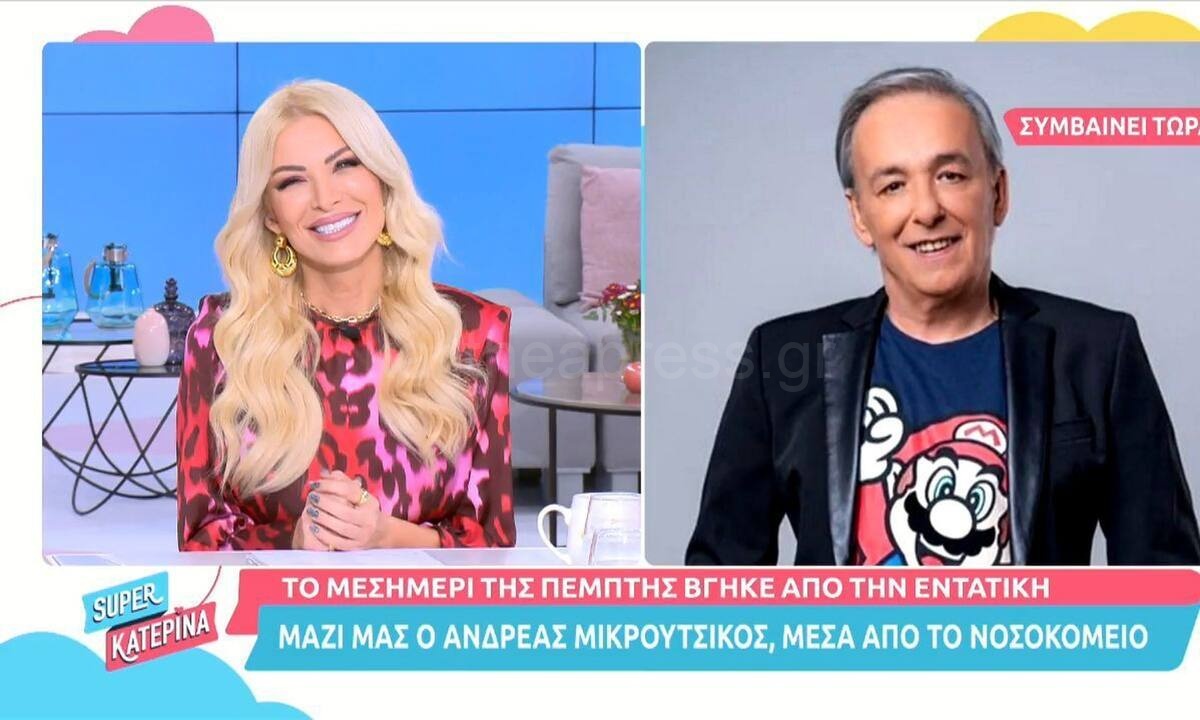 Η Κατερίνα Καινούργιου υποδέχτηκε στο πλατό τον Ανδρέα Μικρούτσικο με μεγάλη συγκίνηση και μεγάλη αγκαλιά.