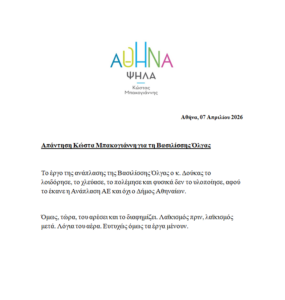 Ο κ. Μπακογιάννης τόνισε χαρακτηριστικά: «Λαϊκισμός πριν, λαϊκισμός και μετά… Λόγια του αέρα. Ευτυχώς όμως τα έργα μένουν», υπογραμμίζοντας ότι η ανάπλαση συνεχίζει να αποτελεί σημαντική παρέμβαση για την πόλη, ανεξάρτητα από τη δημόσια στάση πολιτικών προσώπων.