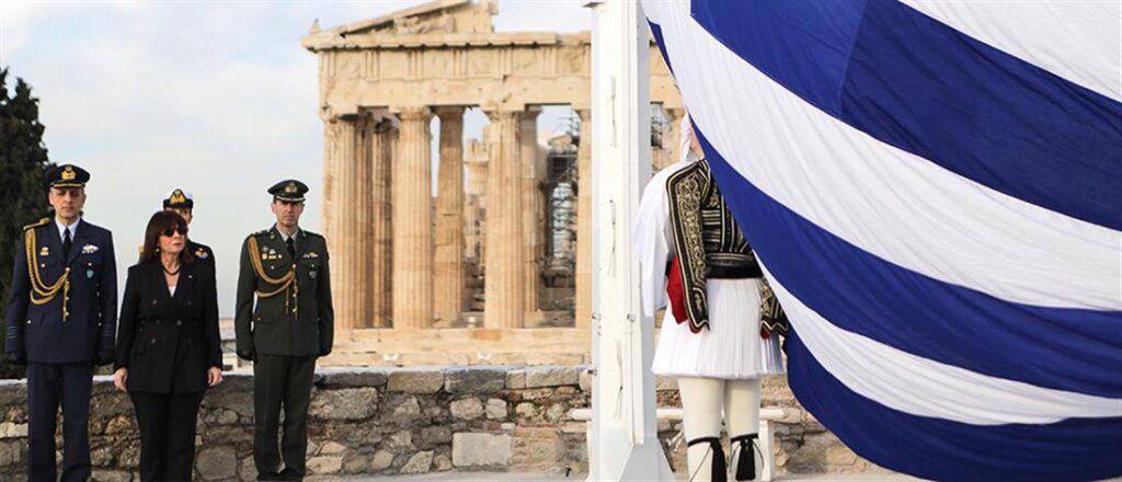 H πρόεδρος Δημοκρατίας Κατερίνα Σακελλαροπούλου έκανε σήμερα την εξής δήλωση για την απελευθέρωση της Αθήνας. στην έπαρση της σημαίας στον Ιερό Βράχο της Ακρόπολης και στη συνέχεια κατέθεσε στεφάνι στο Μνημείο του Αγνώστου Στρατιώτη, στο πλαίσιο του εορτασμού της επετείου.