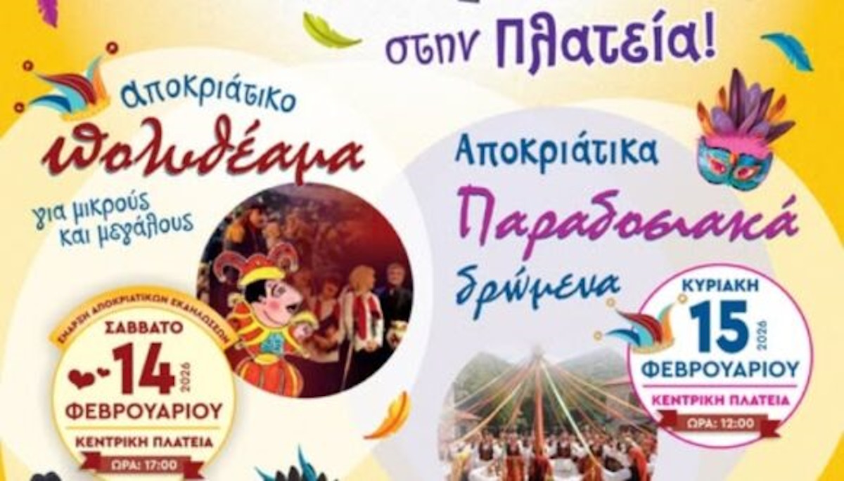 Η αρχή γίνεται το Σάββατο 14 Φεβρουαρίου 2026 στις 17:00, με ένα αποκριάτικο πολυθέαμα που ενώνει το θέατρο, τη μουσική και τη χορωδία. Οι Δημοτικές Χορωδίες και η Φιλαρμονική του Δήμου Νέας Σμύρνης συμπράττουν με το Θέατρο Σκιών για να παρουσιάσουν την παράσταση «Ο Καραγκιόζης Μασκαράς», με ζωντανή μουσική και τραγούδια σε αποκριάτικους ρυθμούς.