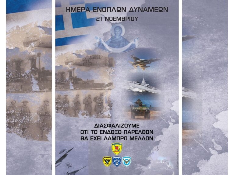 Την Πέμπτη 21 Νοεμβρίου 2024, στο πλαίσιο εορτασμού της Ημέρας των Ενόπλων Δυνάμεων (ΕΔ) και των Εισοδίων της Θεοτόκου (Προστάτιδος των ΕΔ), θα πραγματοποιηθούν στην Αθήνα οι ακόλουθες εκδηλώσεις: