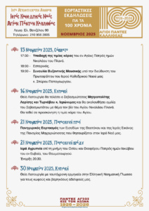 Στο πλαίσιο της Εκατονταετηρίδας, οι πανηγυρικές εκδηλώσεις του Νοεμβρίου 2025 περιλαμβάνουν: