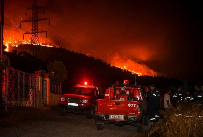 Στους κατοίκους έχει σταλεί μήνυμα από το 112 να απομακρυνθούν άμεσα προς Γραμματικό και Καπανδρίτι.