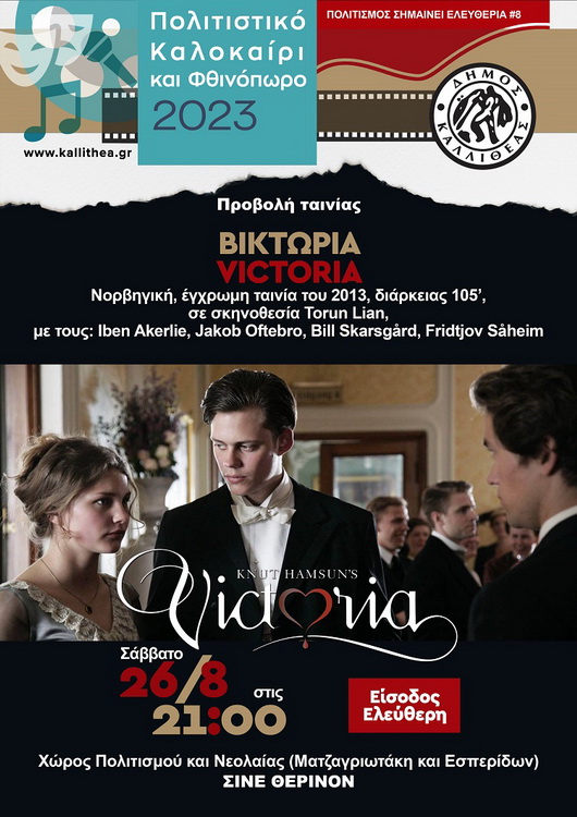 21:00 Χώρος Πολιτισμού και Νεολαίας (Ματζαγριωτάκη και Εσπερίδων) – ΣΙΝΕ ΘΕΡΙΝΟΝ Προβολή ταινίας «ΒΙΚΤΩΡΙΑ/ VICTORIA» – Νορβηγική, έγχρωμη ταινία του 2013, διάρκειας 105′