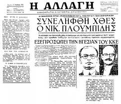 Ο Νίκος Πλουμπίδης, διανοούμενος, ‘κόκκινος δάσκαλος’, ανιδιοτελής κομμουνιστής, ηγετικό στέλεχος του ΚΚΕ. Συνελήφθη 25 Νοέμβρη του 1952 στον Κολωνό από την αστυνομία και μετά την ανάκριση του μεταφέρθηκε στο Σωτηρία βαριά άρρωστος με νεφρίτιδα και φυματίωση. Δύο μέρες μετά αρχίζει η στοχοποίηση του από το κόμμα του. Το ΚΚΕ τον κατήγγειλε ως πράκτορα της ασφάλειας και θανάσιμο εχθρό του λαού. Η στοχοποίηση του θα συνεχιστεί και μετά την εκτέλεση του σε μια χαράδρα στο Δαφνί στις 14 Αυγούστου του 1954. Τελικά η εξαίρετη αυτή πολιτική προσωπικότητα αποκαταστάθηκε από το κόμμα του το 1958.