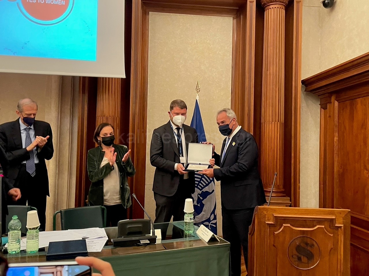 Ο Υπουργός Εσωτερικών Μάκης Βορίδης βραβεύθηκε από την Κοινοβουλευτική Συνέλευση της Μεσογείου (PAM) για τη διαχρονική δράση του Υπουργείου Εσωτερικών στην αντιμετώπιση της ενδοοικογενειακής βίας που πραγματοποιήθηκε στις 18 Νοεμβρίου στη Ρώμη. Σε ειδική τελετή που διοργανώθηκε στο κτίριο της Ιταλικής Γερουσίας ο κ. Βορίδης παρέλαβε το βραβείο από τον Πρόεδρο της Κοινοβουλευτικής Συνέλευσης της Μεσογείου, Gennaro Migliore και στη συνέχεια ανέπτυξε το πλέγμα δράσεων που υλοποιεί η Ειδική Υπηρεσία Διαχείρισης και