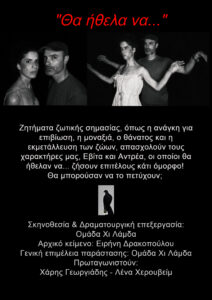 Η ομάδα Χι Λάμδα παρουσιάζει την παράσταση “Θα ήθελα να…”. Ένα έργο με στοιχεία παραλόγου και κωμικές στιγμές, βασισμένο