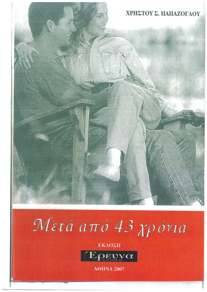 Εδώ, να σημειώσω ότι ο Χρήστος Παπάζογλου, πολυσχιδής προσωπικότητα, είχε εκδώσει ακόμη μια σειρά βιβλίων, δυστυχώς όλα εξαντλημένα. Σας δίνω αυτούς τους δύο τίτλους βιβλίων του που είχα την τιμή να μου προσφέρει για να τους ασκήσω κριτική : ‘Παιχνίδια της εποχής μου’/ βιβλίο για τα παιχνίδια που έπαιζαν στους δρόμους και τις αλάνες της Καλλιθέας τα παιδιά μετα την κατοχή και το ‘Μετά από 43 χρόνια’ / μυθιστόρημα/2007.