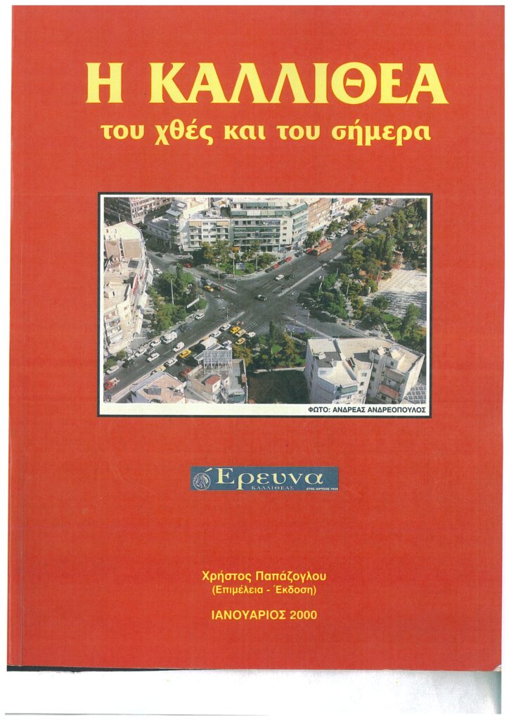 Το βιβλίο: ‘Η Καλλιθέα του χθες και του αύριο’. / έκδοση: ΕΡΕΥΝΑ ΚΑΛΛΙΘΕΑ/2000. Ναι, μόλις συμπληρώθηκαν 20 χρόνια από την έκδοση αυτού του βιβλίου, βιβλίο ντοκουμέντο για την πόλη της Καλλιθέας.
