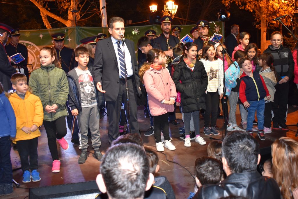 Στην εκδήλωση ακούσαμε Χριστουγεννιάτικες μελωδίες από τη Δημοτική Φιλαρμονική.