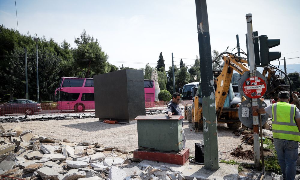 Το βάθρο του αγάλματος έχει ήδη τοποθετηθεί στη συμβολή των οδών Βασιλίσσης Όλγας και Αμαλίας