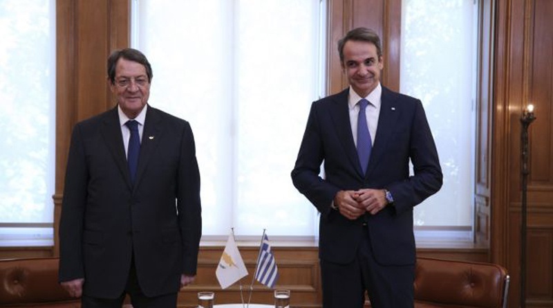 Ν. Αναστασιάδης: Ευχαριστώ Κυριάκο μου, είναι πραγματικά και εμένα ξεχωριστή χαρά, γιατί είναι η πρώτη εκτός Κύπρου επίσκεψη. Και γίνεται, όπως εθιμοτυπικά να ελάμβανε χώρα εκλογή, με πρώτη επίσκεψη πάντοτε την Αθήνα. Όμως οι συνθήκες που υπαγορεύουν την εδώ παρουσία μου -όπως πολύ ορθά έχεις επισημάνει- είναι ο καλύτερος συντονισμός και η άριστη, η ακόμα πιο άριστη αν θες, συνεργασία στην αντιμετώπιση των προκλήσεων που αντιμετωπίζει η Ευρώπη, η Κύπρος, η Ελλάδα, η Συρία, η Λιβύη, μία σειρά χωρών από προκλητικές ενέργειες που καταγράφονται από πλευράς Τουρκίας, με το πιο πρόσφατο, την μετατροπή ενός παγκόσμιου πολιτιστικού κληροδοτήματος, μιας κληρονομιάς παγκόσμιου πολιτισμού, σε τέμενος.