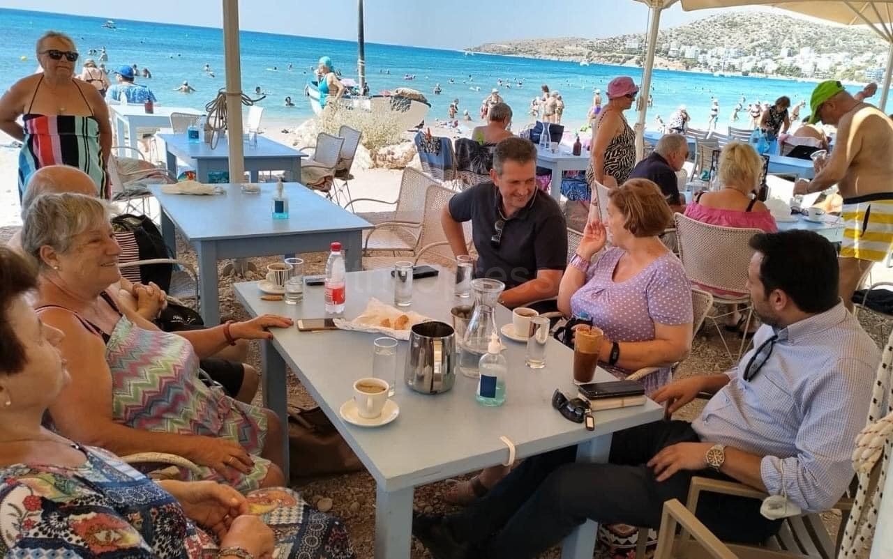 Συγκεκριμένα η ανάρτηση του Δημήτρη Κάρναβου στη σελίδα του στο fb αναφέρει “Μια ευχάριστη και «δροσερή» συζήτηση με τους συμμετέχοντες στα δωρεάν θαλάσσια μπάνια που διοργανώνει κάθε χρόνο η Κοινωνική Υπηρεσία του Δήμου μας.”