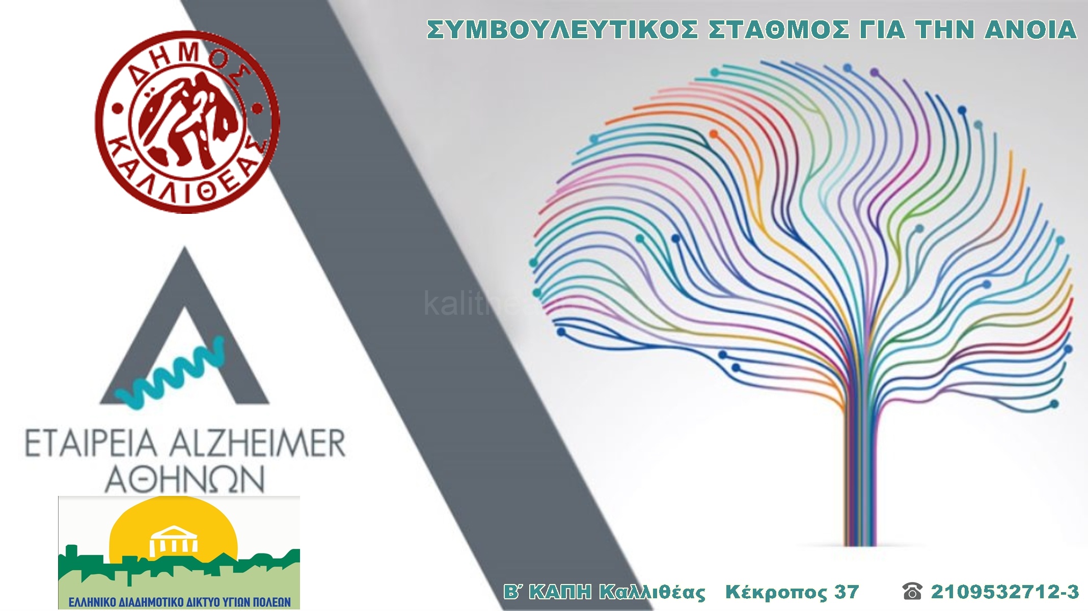 Ο Δήμος Καλλιθέας, ξεκινά την λειτουργία του Συμβουλευτικού Σταθμού για την Άνοια σε συνεργασία με το Ελληνικό Διαδημοτικό Δίκτυο Υγιών Πόλεων και την Εταιρεία ALZHEIMER Aθηνών. Τον Συμβουλευτικό Σταθμό για την Άνοια, μπορούν να επισκέπτονται, άτομα που
