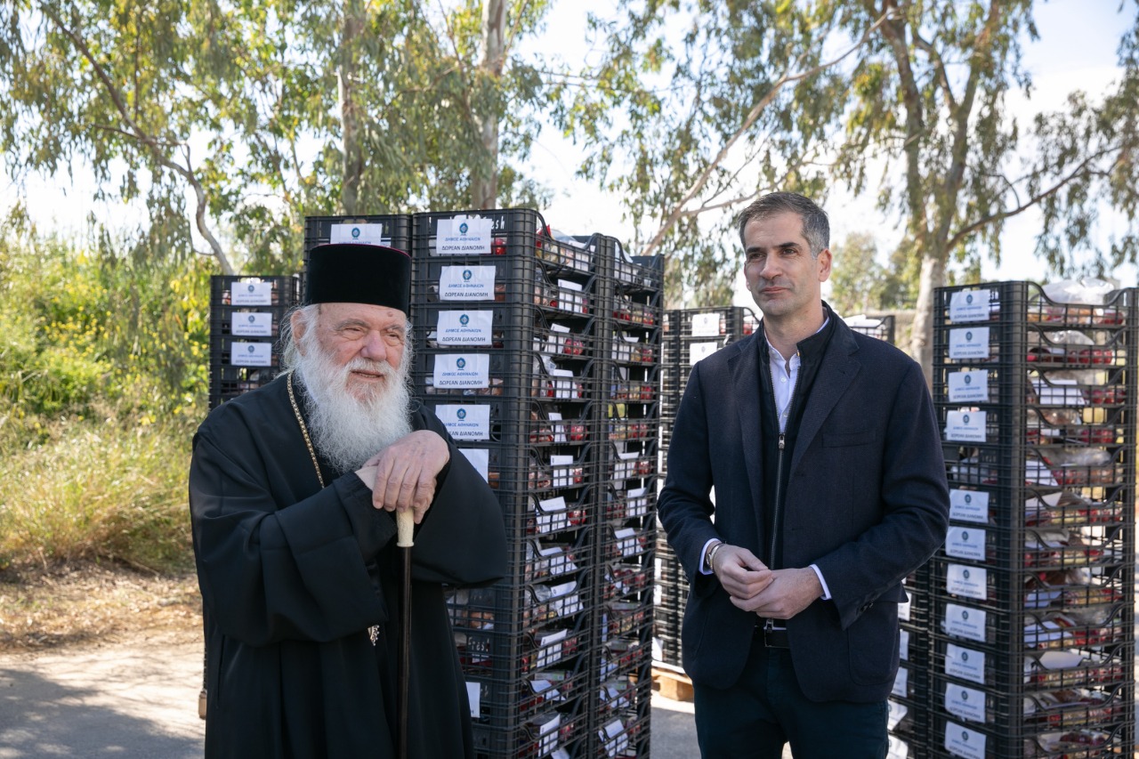 Στο χώρο του Δήμου Αθηναίων στον Βοτανικό απ΄ όπου ξεκινούν καθημερινά χιλιάδες πακέτα τροφίμων και άλλων ειδών που παραδίδονται κατ΄ οίκον σε οικογένειες και μοναχικούς ανθρώπους οι οποίοι ανήκουν σε ευάλωτες και ευπαθείς ομάδες του πληθυσμού, υποδέχθηκε το πρωί τον Αρχιεπίσκοπο Αθηνών και Πάσης Ελλάδος κ. κ. Ιερώνυμο, ο δήμαρχος Αθηναίων Κώστας Μπακογιάννης.