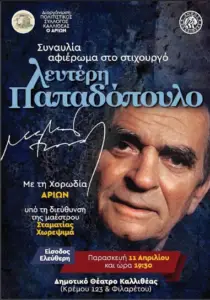 19.30 «Συναυλία αφιέρωμα στο στιχουργό Λευτέρη Παπαδόπουλο»