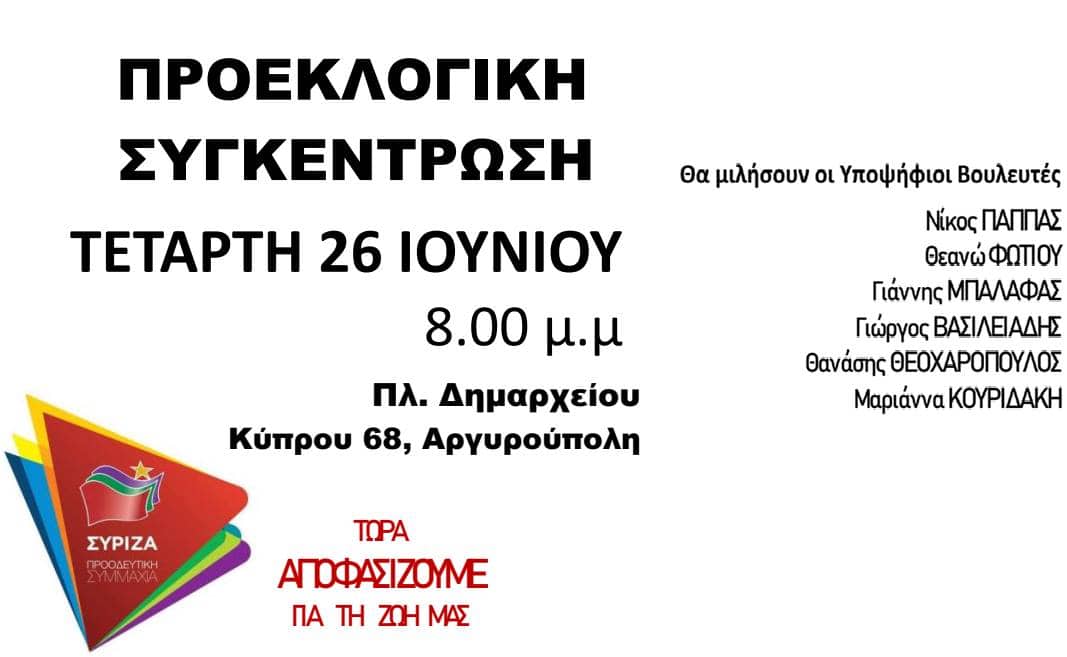 Τετάρτη 26/06 στις 20:00, στην Αργυρούπολη στην Πλατεία Δημαρχείου Πλοήγηση άρθρων Δυνατή πρεμιέρα για τους Έλληνες ιστιοπλόους στο ευρωπαϊκό πρωτάθλημα Όπτιμιστ Κρίσιμη συνάντηση Αποστολάκη – Ακάρ στην έδρα του ΝΑΤΟ