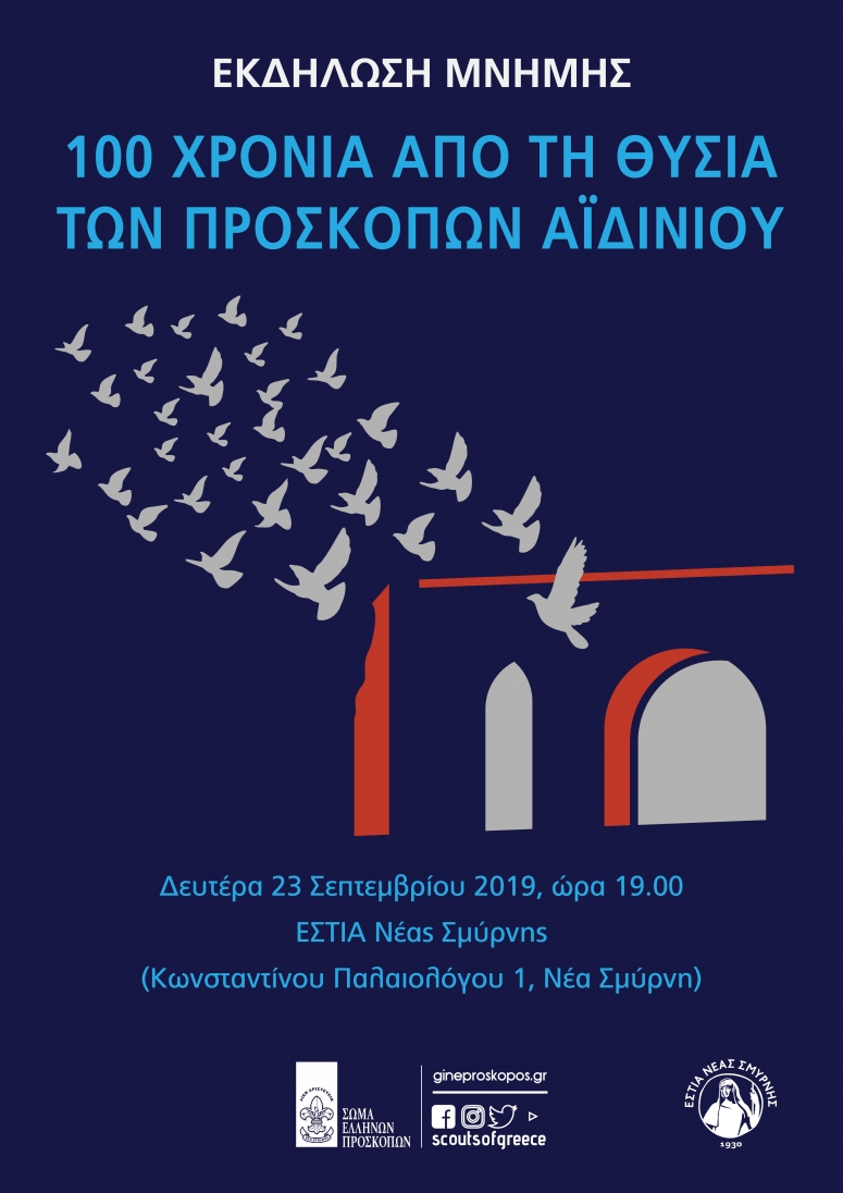 Η ΕΣΤΙΑ Νέας Σμύρνης σε συνεργασία με το Σώμα Ελλήνων Προσκόπων, τιμά τη μνήμη των Προσκόπων του Αϊδινίου που κατακρεουργήθηκαν και μαρτύρησαν στο Αϊδίνιο της Μικράς Ασίας το 1919.