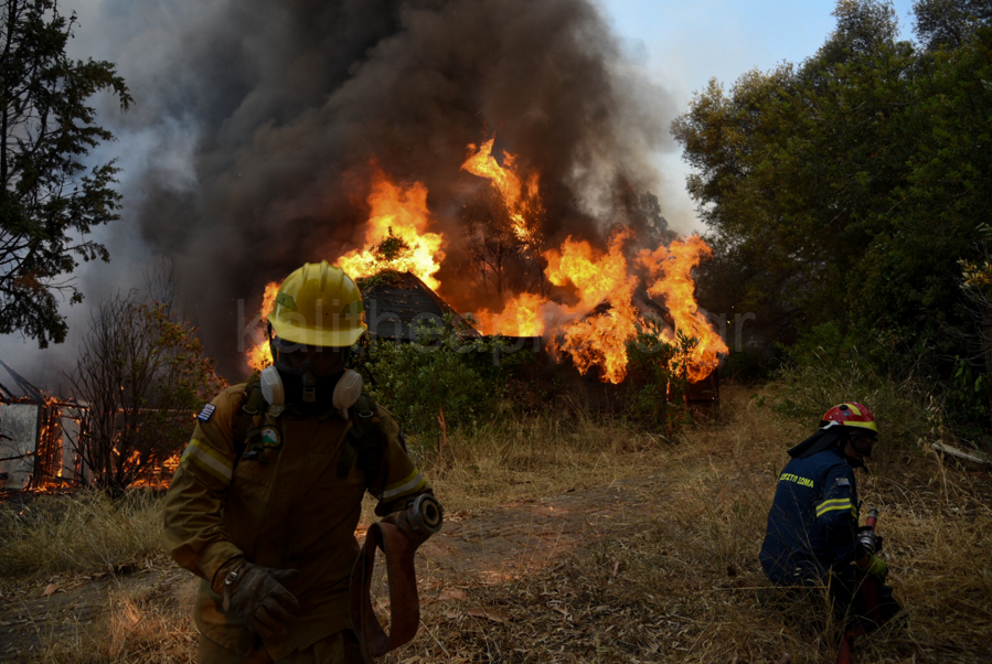 Για την κατάσβεση της φωτιάς επιχειρούν ισχυρές επίγειες και εναέριες πυροσβεστικές δυνάμεις.