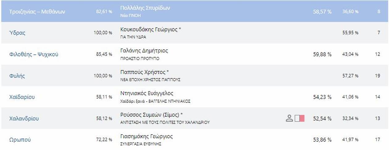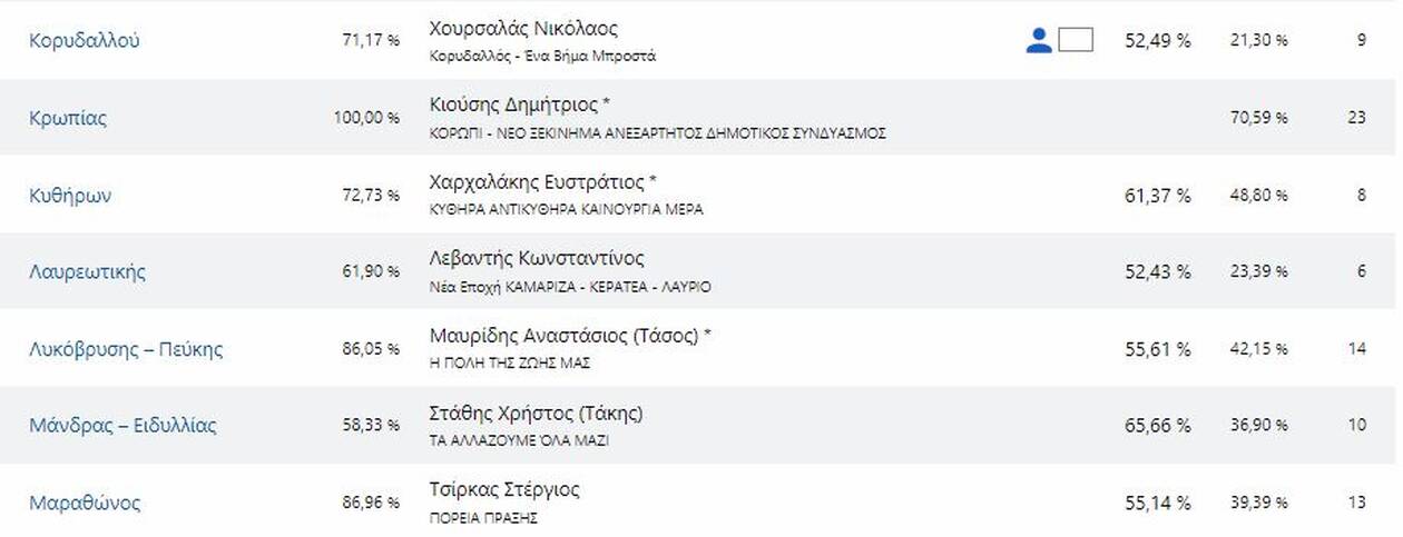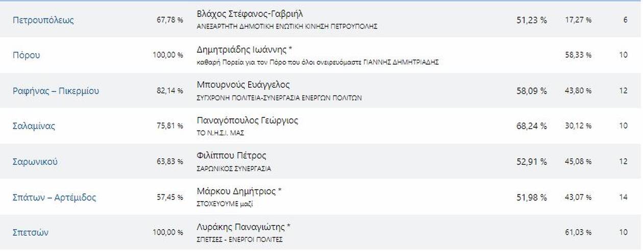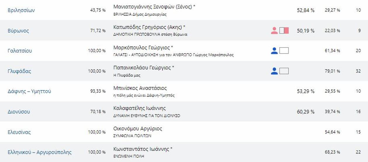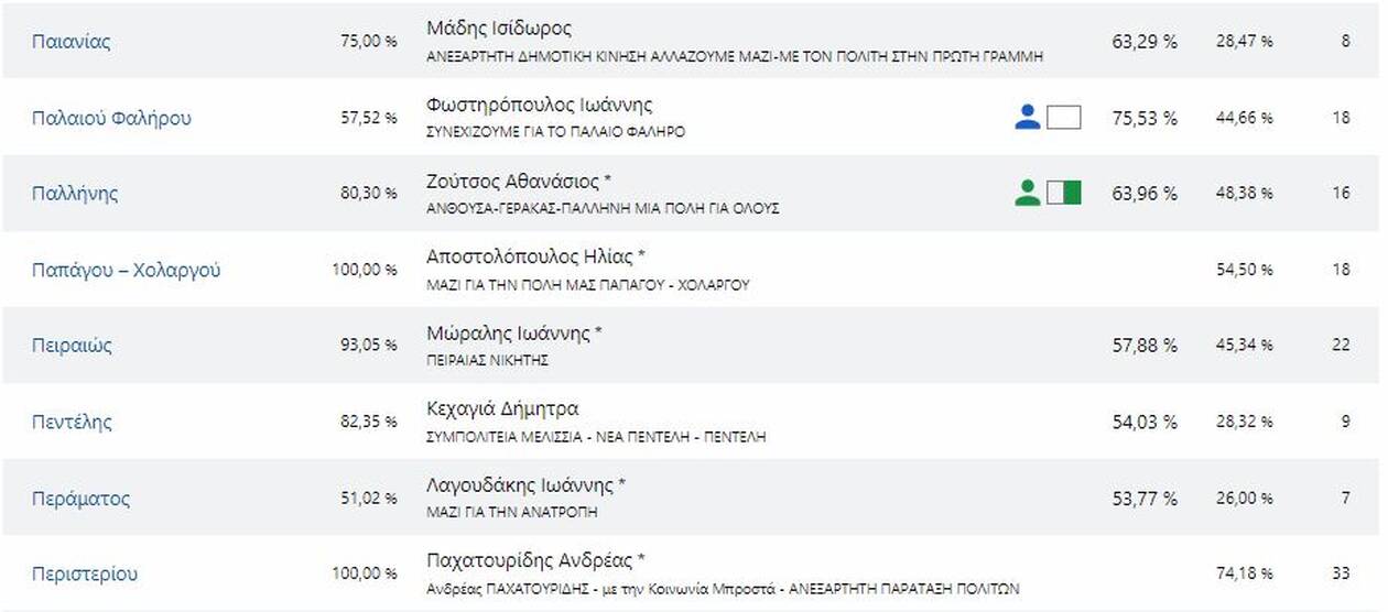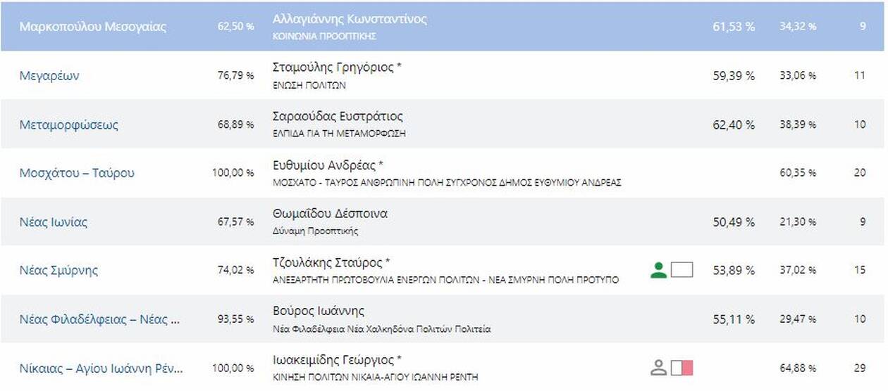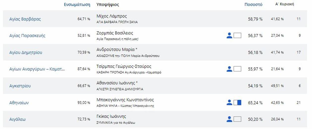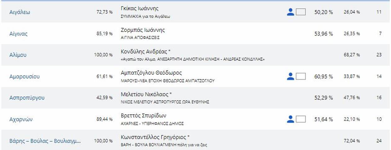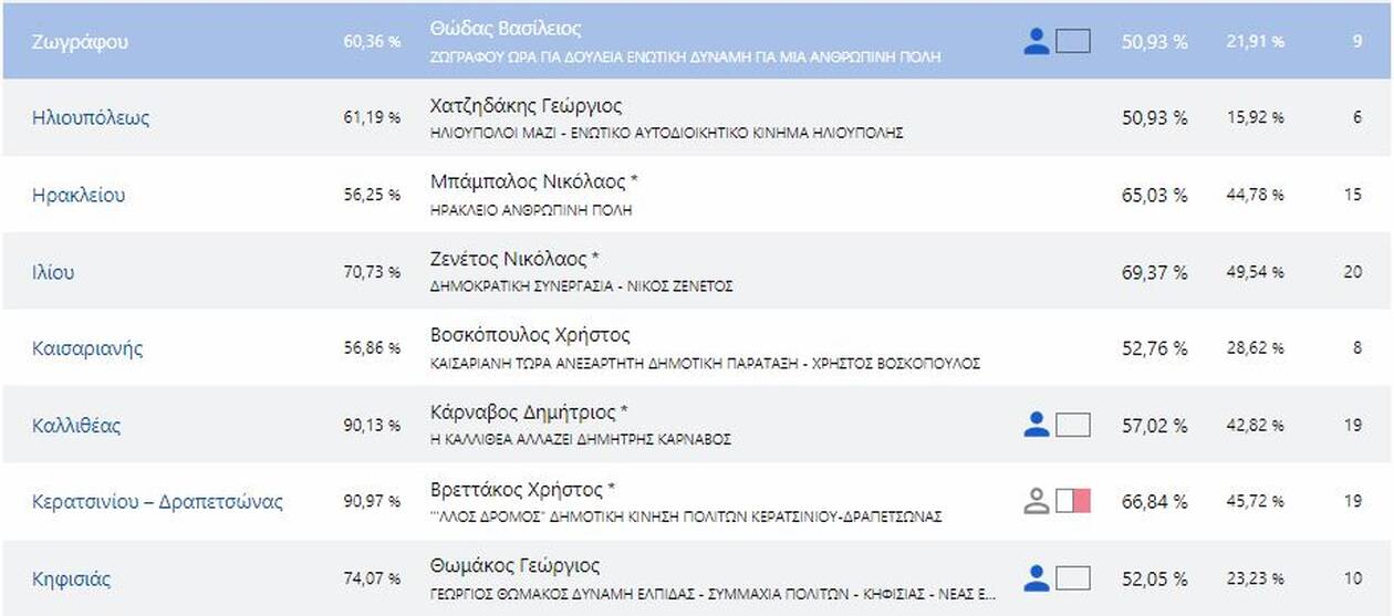 Δείτε τους νέους δήμαρχους που εκλέγονται στην Αττική και τα ποσοστά που έλαβαν αναλυτικά: