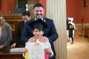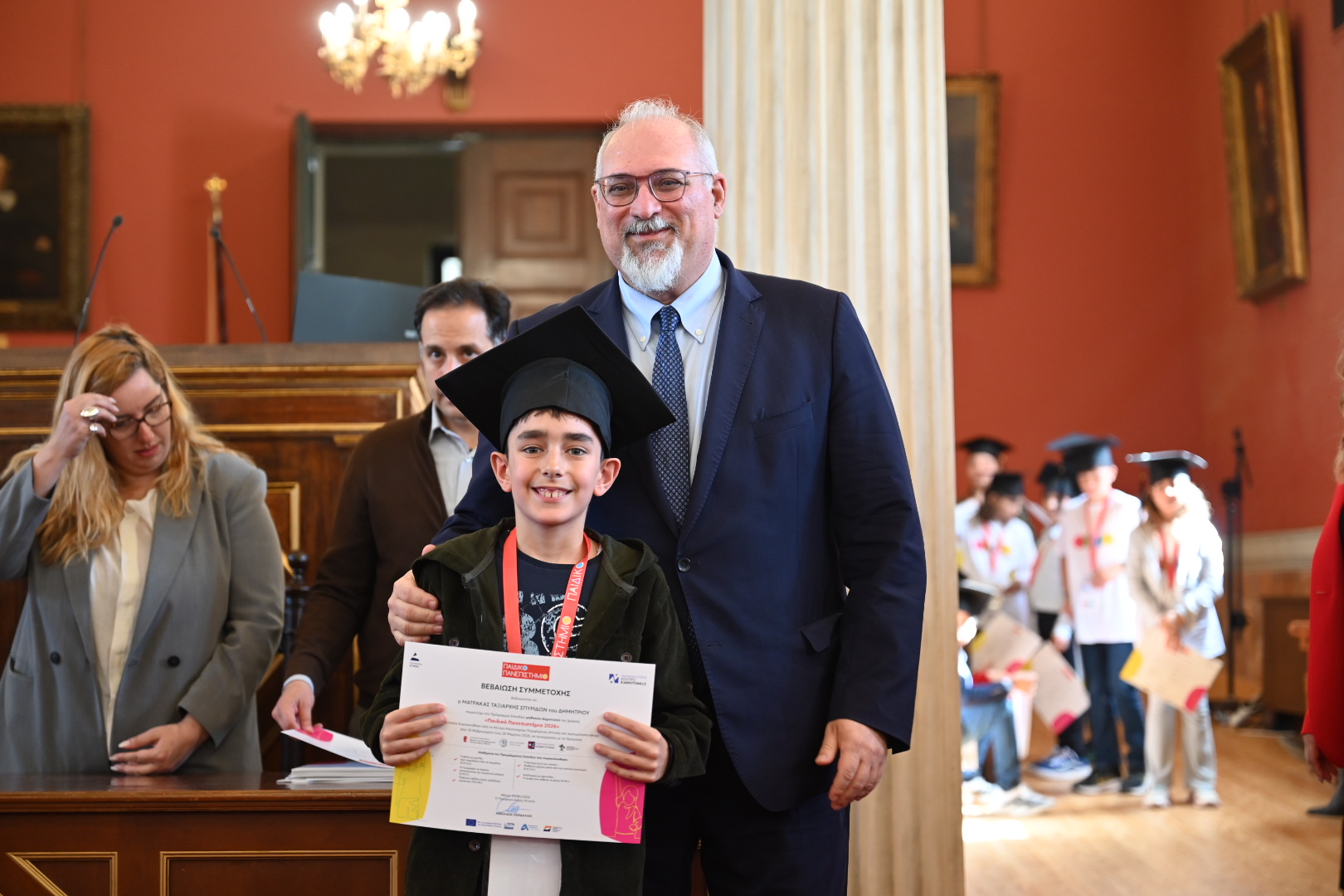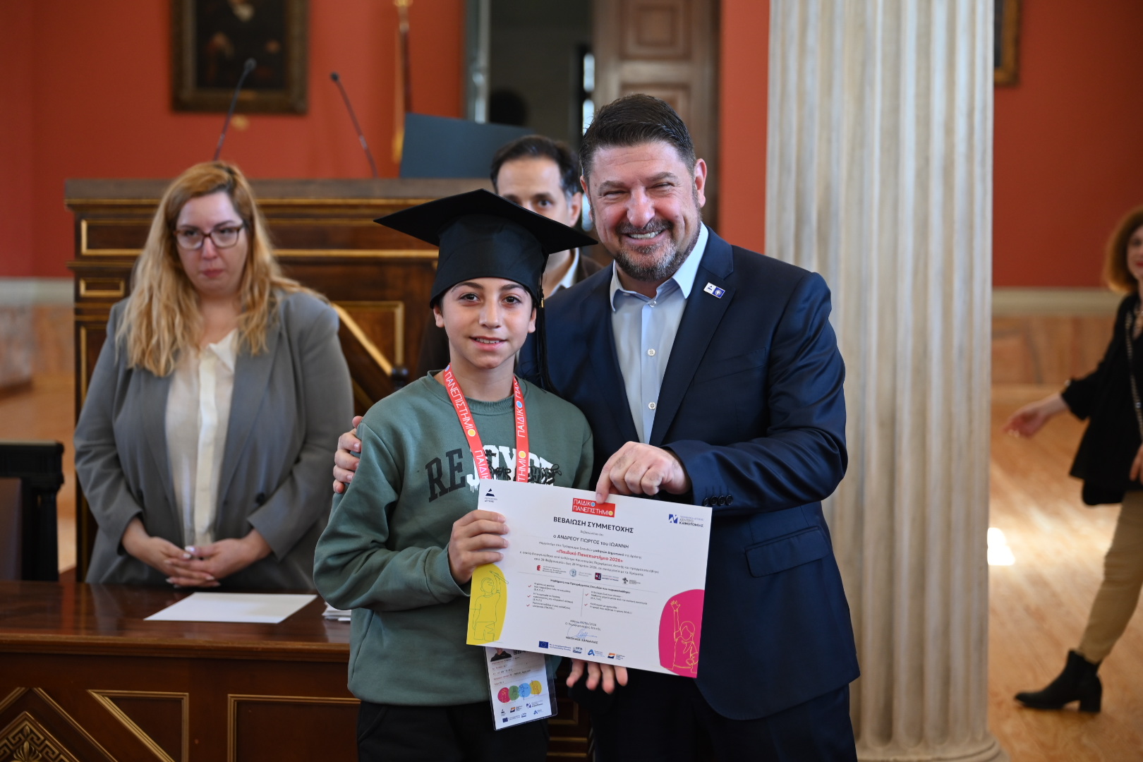 Η τελετή αποφοίτησης πραγματοποιήθηκε στην εμβληματική κεντρική αίθουσα του Εθνικό και Καποδιστριακό Πανεπιστήμιο Αθηνών στα Προπύλαια, παρουσία του Περιφερειάρχη Αττικής Νίκος Χαρδαλιάς, ο οποίος απένειμε διπλώματα στους μαθητές που συμμετείχαν στο πρόγραμμα.
