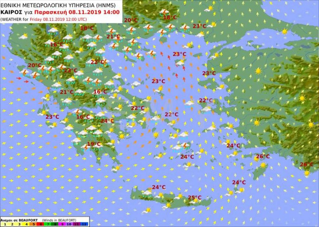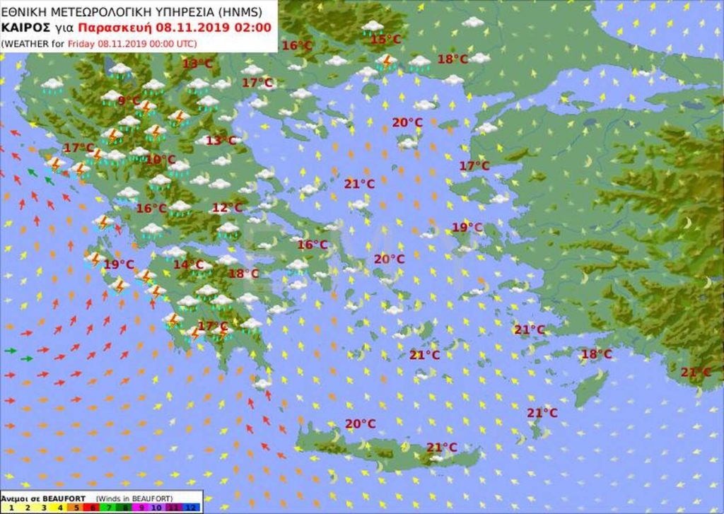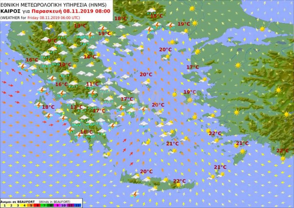 Αναλυτικά η πρόγνωση του καιρού από την Εθνική Μετεωρολογική Υπηρεσία για την Παρασκευή 8 Νοεμβρίου