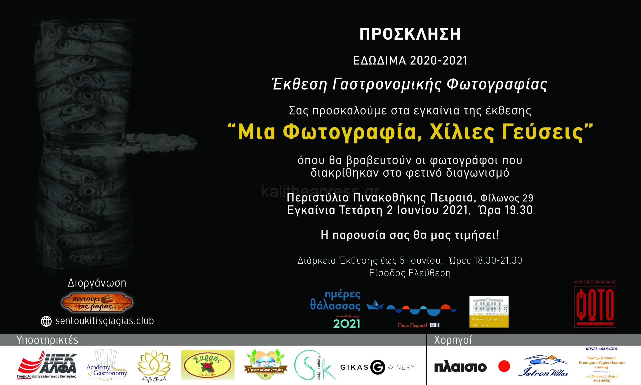Στις 2 Ιουνίου 2021, στις 19.30 στο Περιστύλιο της Πινακοθήκης Πειραιά πραγματοποιείται μια έκθεση γεμάτη Φως, Χρώματα και Γεύσεις.