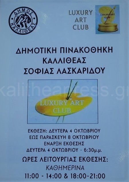 Την Δευτέρα 4 Οκτωβρίου στις 19.00 ξεκινά στη Δημοτική Πινακοθήκη Καλλιθέας η έκθεση του LUXURY ART CLUB