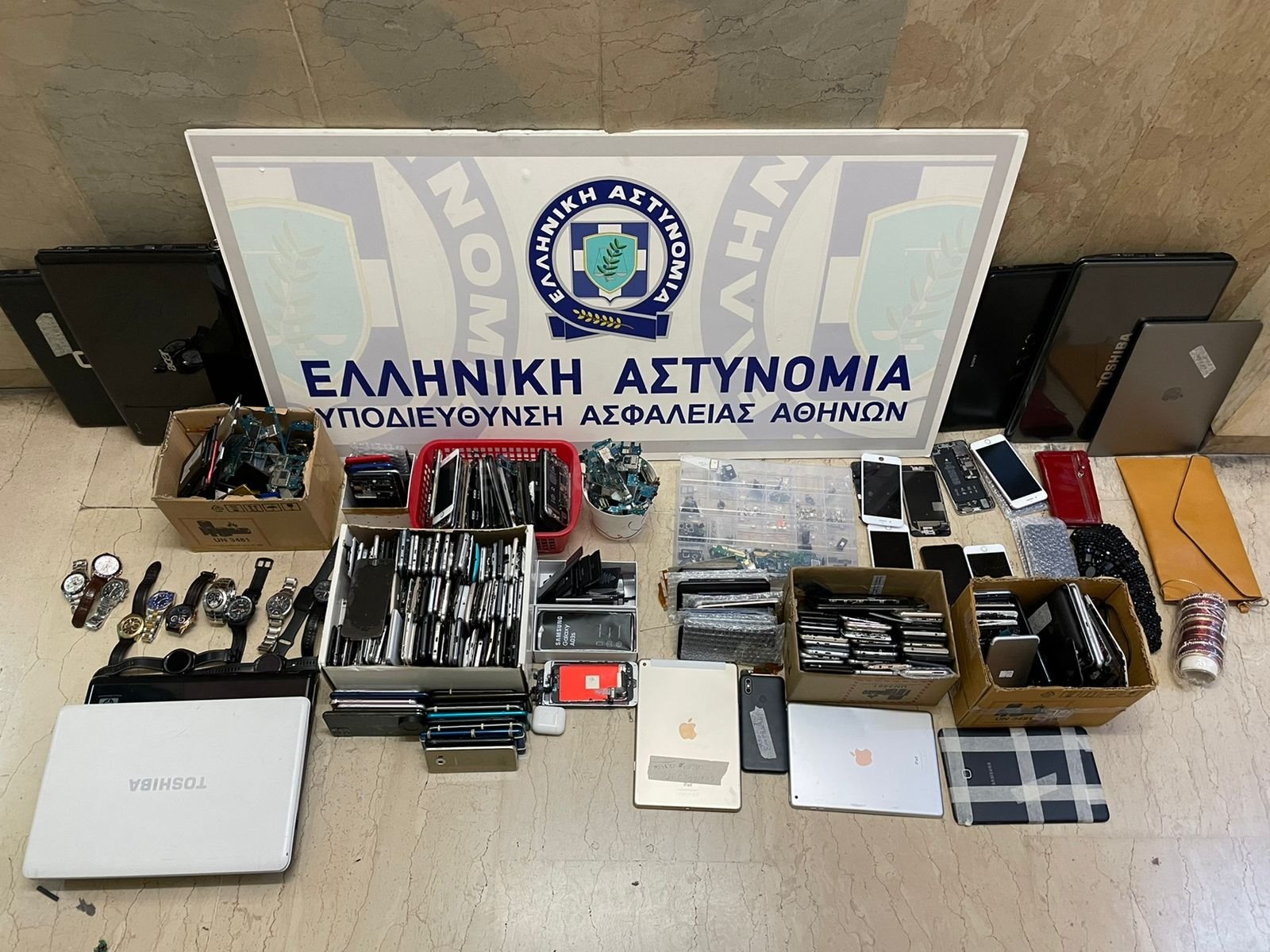 Από τις έρευνες που πραγματοποιήθηκαν σε (20) οικίες των μελών της οργάνωσης, καθώς και σε (2) καταστήματα των κλεπταποδόχων, βρέθηκαν συνολικά και κατασχέθηκαν :