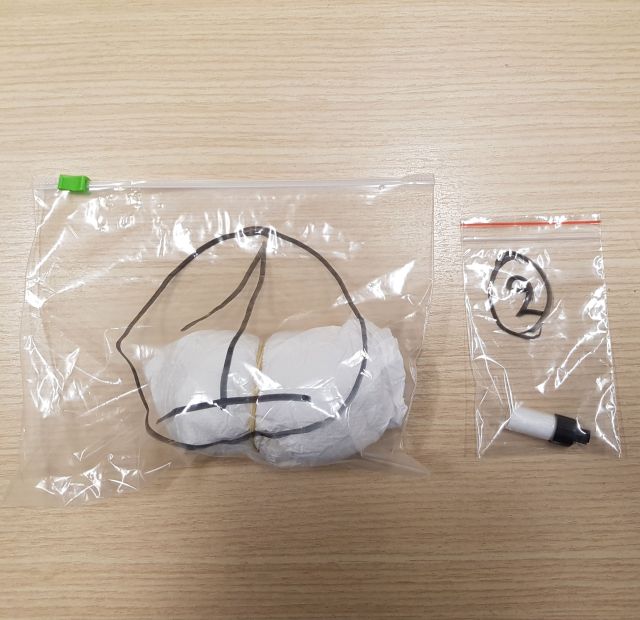 δύο (02) δισκία λευκού χρώματος αγνώστου σύνθεσης,
