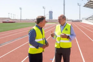 “Τα έργα προχωρούν εντυπωσιακά και στα 40 εργοτάξια της έκτασης με περισσότερους από 3.000 εργαζόμενους. Ο Αντιπρόεδρος είχε την ευκαιρία να δει την πρόοδο στα έργα που προορίζονται για το κοινό, όπως τα γήπεδα στίβου και ρίψεων που είναι ήδη έτοιμα να δεχτούν τους αθλητές της εθνικής ομάδας. Μέχρι την άνοιξη του 2026, θα είναι έτοιμες και ανοιχτές για το κοινό οι υπόλοιπες αθλητικές εγκαταστάσεις, όπως τα γήπεδα ποδοσφαίρου, τένις, μπάσκετ και τον υγρό στίβο.”