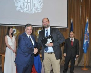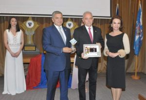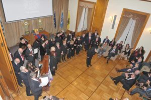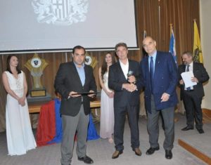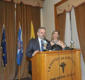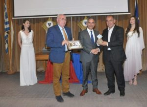 Κατάμεστη η αίθουσα του Εμπορικού & Βιομηχανικού Επιμελητήριου Πειραιά, πανό από 800 άτομα που ήταν κει για να χειροκροτήσουν τα 11 άτομα που βραβευτήκαν σε διαφόρους τομής.
