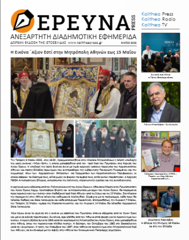 Διαβάστε την πασχαλινή Ανεξάρτητη Δωρεάν Διαδημοτική Εφημερίδα ΕΡΕΥΝΑ Press της διαδικτυακής σελίδας www.Kalitheapress.gr
