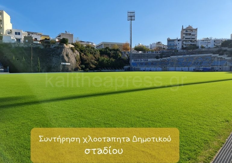 Τελειώνει η επισπορά του χλοοτάπητα στον αγωνιστικό χώρο του Δημοτικού Σταδίου Καλλιθέας «Γρηγόρης Λαμπράκης» που είχε ξεκινήσει στις 09 Νοεμβρίου